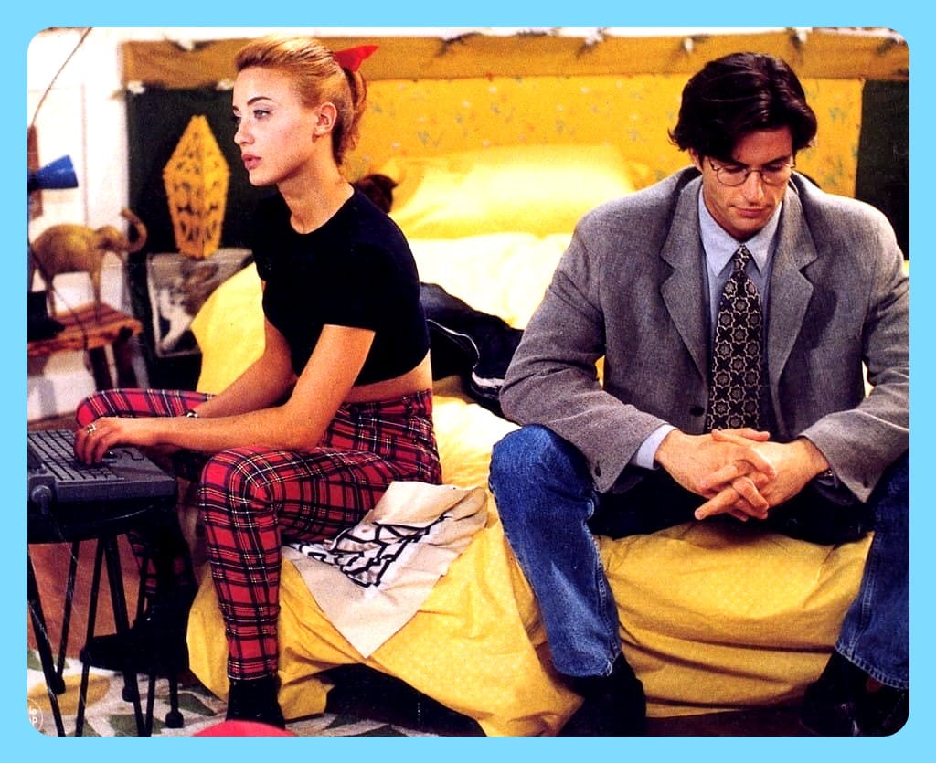 En dehors des sessions de répétitions de Nicolas et de ses acolytes, Christian, Etienne et José, on peut voir les filles se faire des confidences dans leurs chambres ou encore dans la salle de bains, dans des tenues colorés, fluo et bariolés très emblématiques de l'époque sans oublier les jeans Mom droits et les sweats oversize, qui me manquent terriblement. Personne ne pourra oublier la casquette relevée de Johanna, les gilets marrons bleus ou verts par dessus les chemises manches longues de Nicolas, et les chemises à motifs tout aussi inégalable de Cri cri d'amour (alias Christophe) et encore moins les tenues de sport de Laly, assortis à ses chouchous. Bien que les personnages ont marqué mon époque, j'étais trop petite encore pour bien saisir l'importance, ni le contexte des relations amoureuses qui existait entre les personnages. Je regardais surtout leur vêtements parce que je trouvais cela déjà trop ennuyeux, que ce soit le montage, les rires enregistrés, les intriques prémédités à des km à l'avance. Johanna était vraiment mon personnage fétiche parce que son accent la rendait différente et unique et Nicolas, bien évidemment mais seulement parce qu'il était le batteur du groupe.