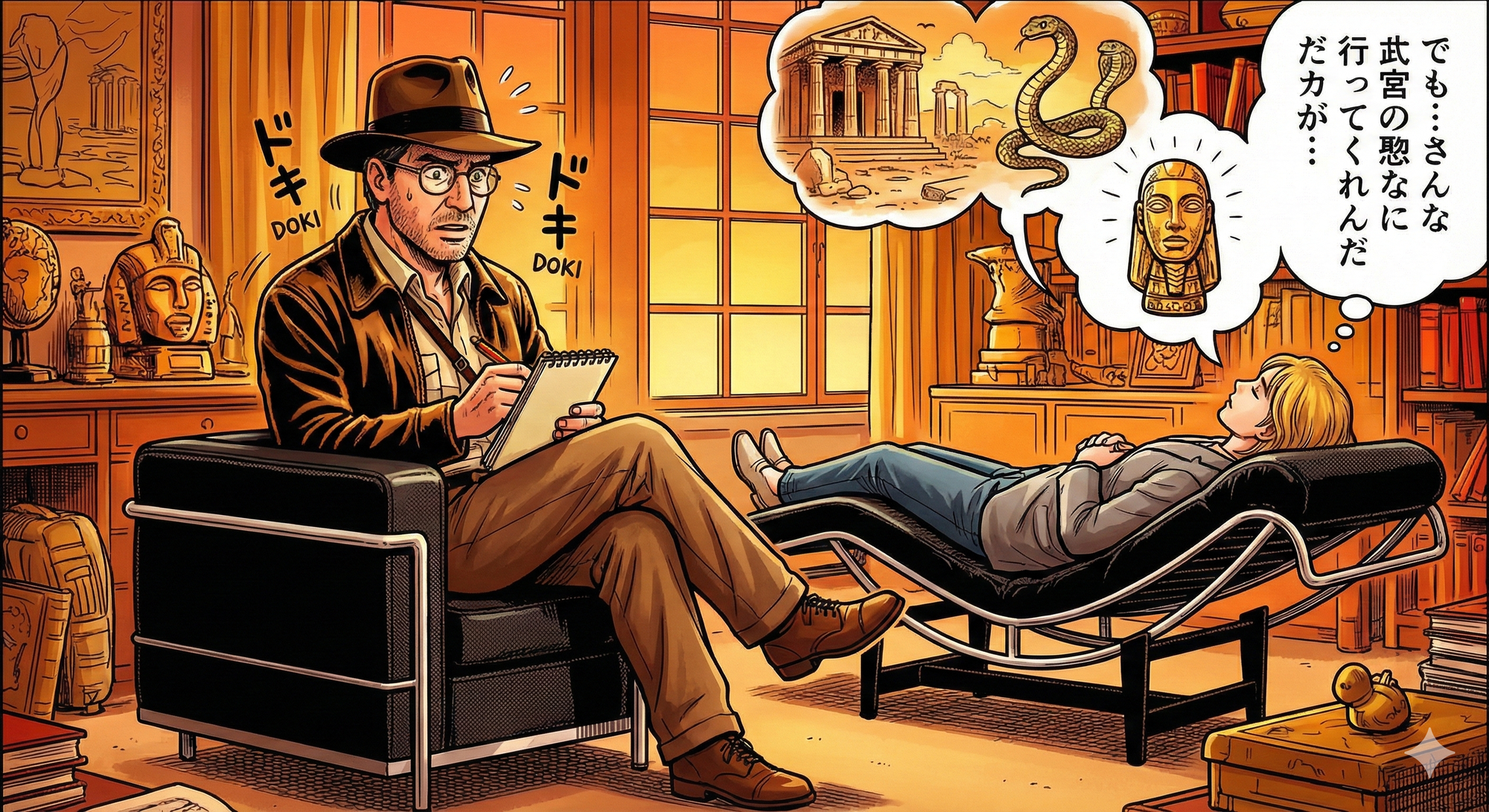 C'est la série qui résonne le plus avec notre besoin d'honnêteté crue. On passe de la dépression en jogging à la lente reconstruction, en faisant des erreurs monumentales au passage. Et l'humour est omniprésent. Mention spéciale au mentor de Jimmy, incarné par la légende vivante Harrison Ford, qui troque le fouet d'Indiana Jones pour jouer un vieux psy ronchon qui finit par assumer ses failles. Et j'ai demandé littéralement à l'IA de Gemini de créer cette image parce que c'est à peu près tout ce qu'on a en tête quand on essaie d'imaginer Harrison Ford en tant que psychiatre.